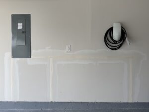 - Main panel upgrade, new 240 V circuit, wiring/conduit run to garage